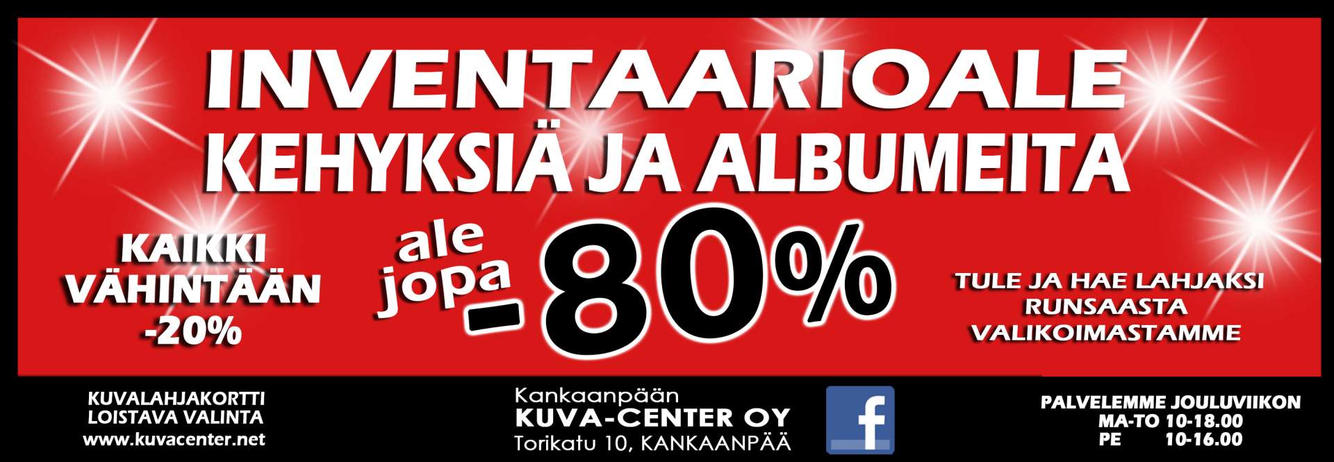 Kaikki upeat kehykset ja albumit vähintään -20% alennuksella, paljon myös puoleen hintaan.